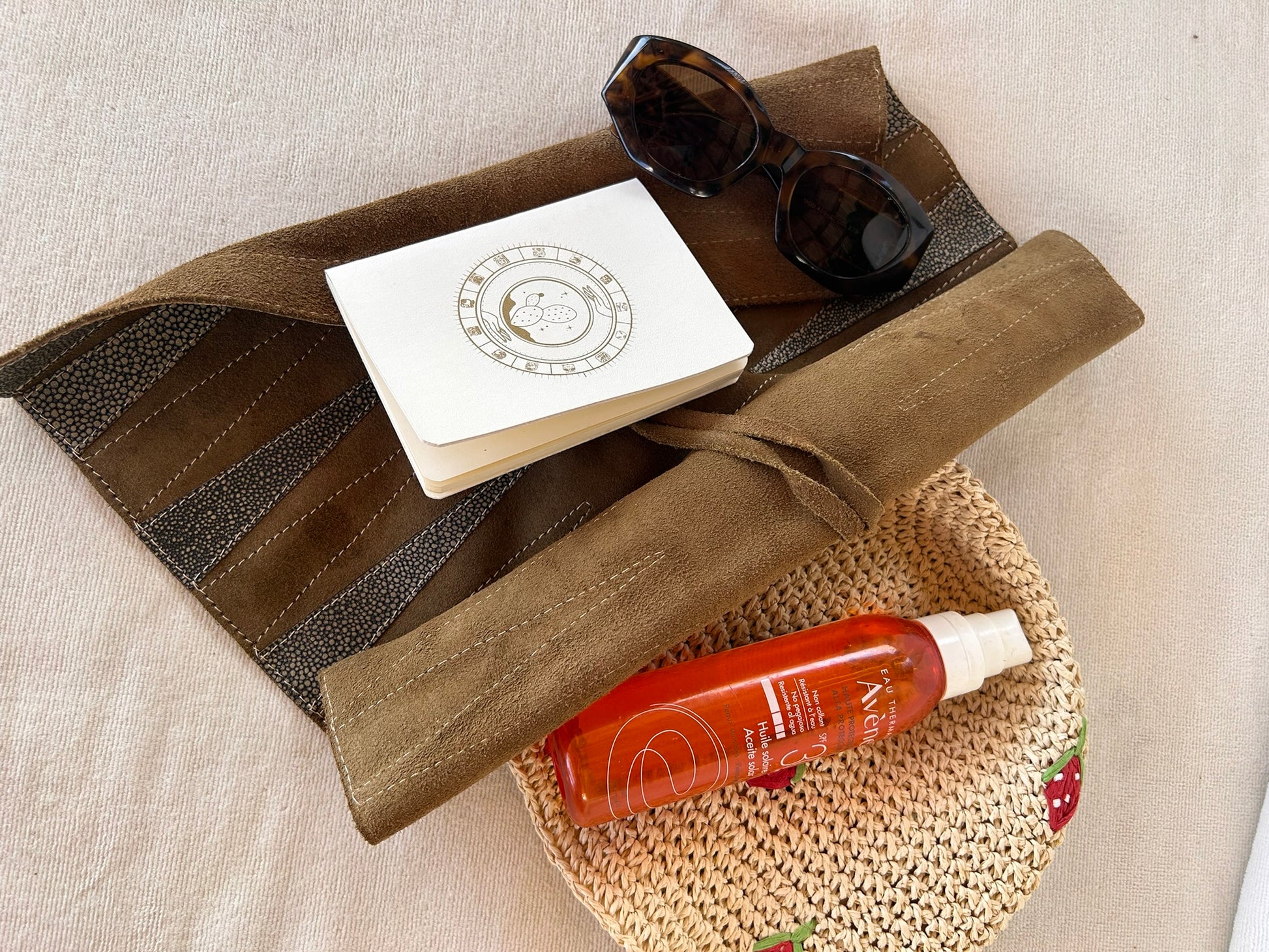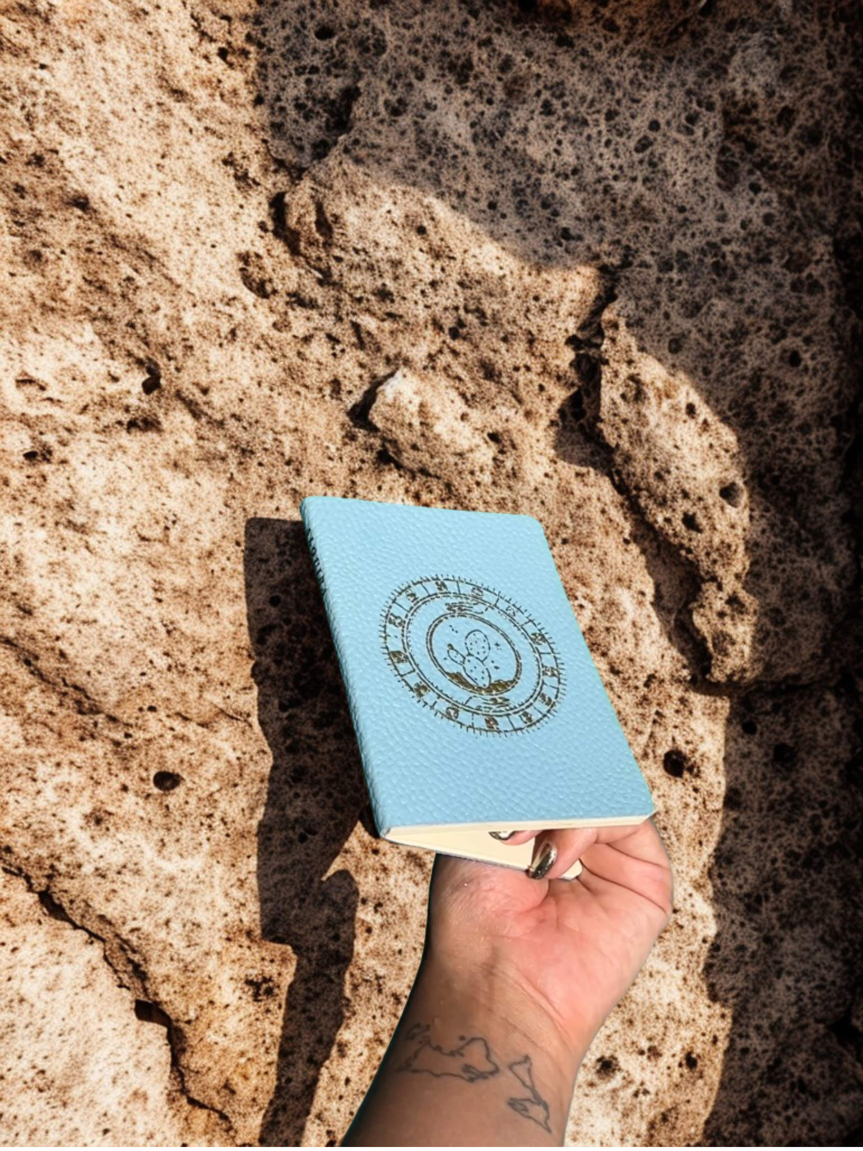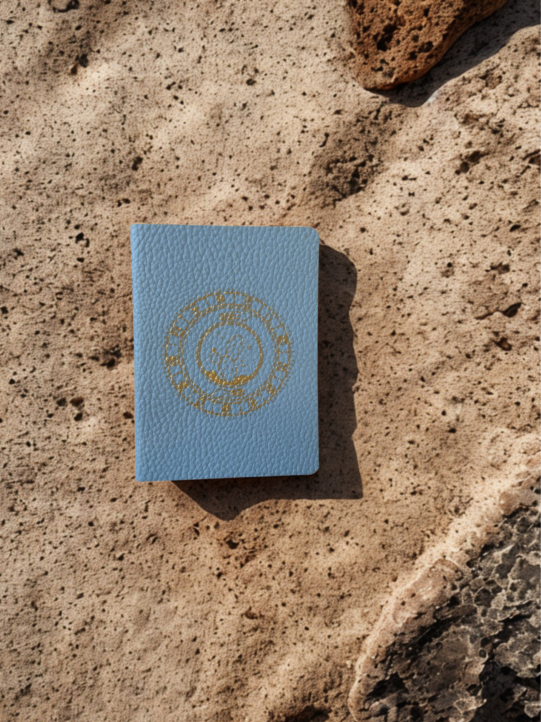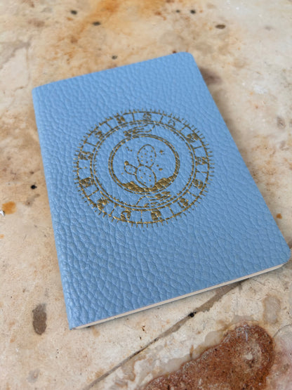 Libreta tamaño pasaporte. Hoja lisa color bond. Cubierta suave hecha con piel de nopal. Y sobre expandible.